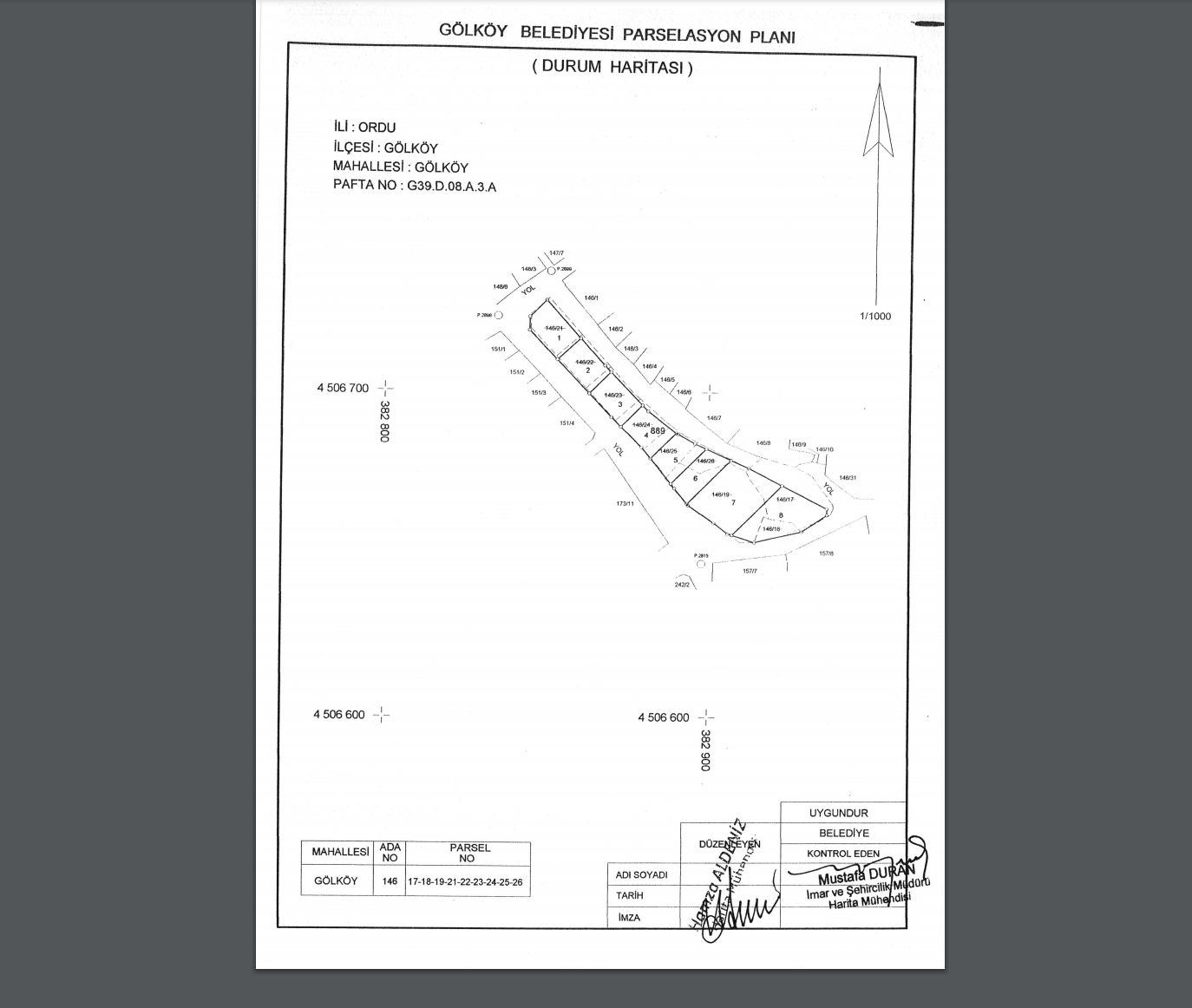 Gölköy İlçesi Gölköy Mahallesi 146 ada 17-18-19-21-22-23-24-25-26 numaralı parselleri kapsayan Gölköy Belediye Encümeninin 27.11.2020 tarih ve 117 sayılı kararı ile 3194 sayılı yasanın 18. madde uygulaması yapılmıştır. Parselasyon planı ve dağıtım cetvelleri belediyemiz hizmet binasının ikinci katında 12.02.2021 tarihinde 3194 sayılı imar kanunun 19. maddesi gereği 1 ay müddetle askıya çıkarılmıştır.